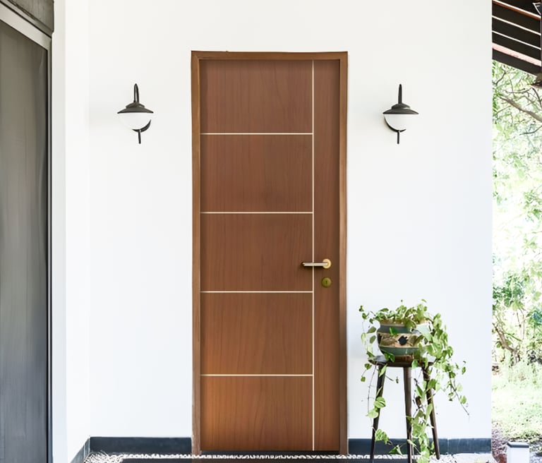 Rumah bergaya minimalis memang sedang populer belakangan ini. Untuk melengkapi rumah minimalis Anda, hadirkan juga model pintu yang minimalis. Tidak perlu berpikir terlalu rumit. Sesuai dengan namanya, desain pintu minimalis terlihat simpel namun tetap bisa membuat rumah terlihat menarik. Jangan lupa, agar tampilan depan rumah tidak monoton, Anda bisa menambahkan dekorasi di area outdoor rumah, seperti tanaman hias, lampu dinding dekoratif, atau hiasan gantung lainnya untuk mempercantik penampilan rumah.