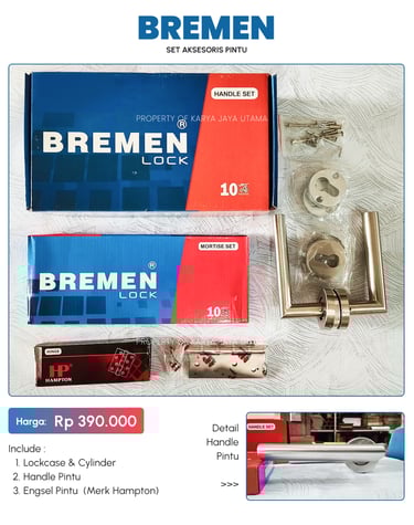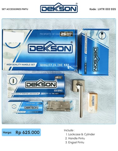 Kami juga menjual beberapa aksesoris pintu seperti Handle Pintu, Engsel Pintu dan juga Paket 1 set aksesoris tersebut.